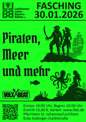 Die Faschingszeit bei der LLBB beginnt am 30.01.2026 mit dem Faschingsball 'Piraten, Meer & Mehr'!
