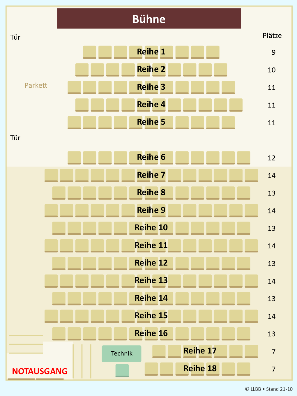 Auf diesem Plan sehen Sie die Aufteilung der Sitzplätze im Saal.